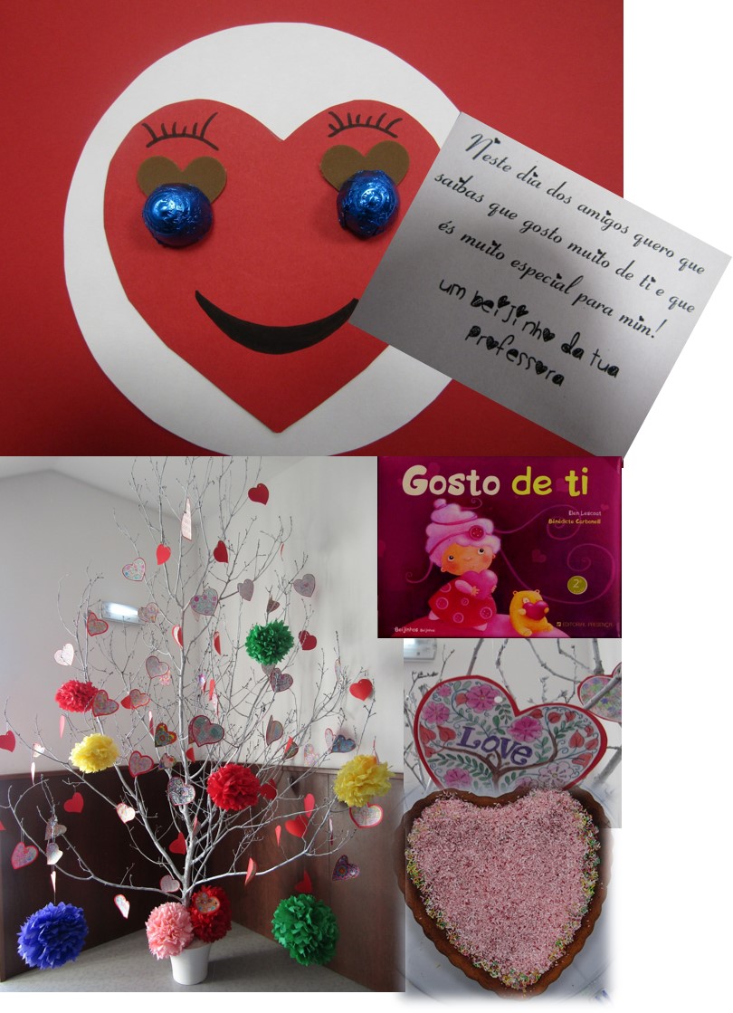 O Dia da Amizade ou o Valentine's Day não foi esquecido na nossa escola porque consideramos que os laços de amizade devem ser sempre reacendidos. Nesse sentido, ao longo do dia fomos celebrando esta data lendo e interpretando a história: “Gosto de Ti” de Elen Lescoat e de Bénédicte Carboneill, construindo a árvore dos sentimentos, elaborando cartões de amizade e até se comeram bolos alusivos ao dia.